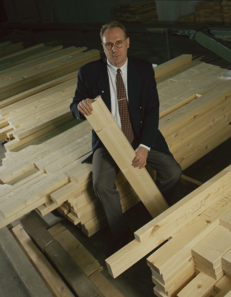 Seppo Lillstrang toimi 1987–2007 Puukeskuksen Pohjois-Suomen aluejohtajana ja Puukeskuksen johtoryhmän jäsenenä. Kuvassa Kastellitalojen pre-cut määrämittaisen sahatavaran ensimmäiset toimitukset alkamassa