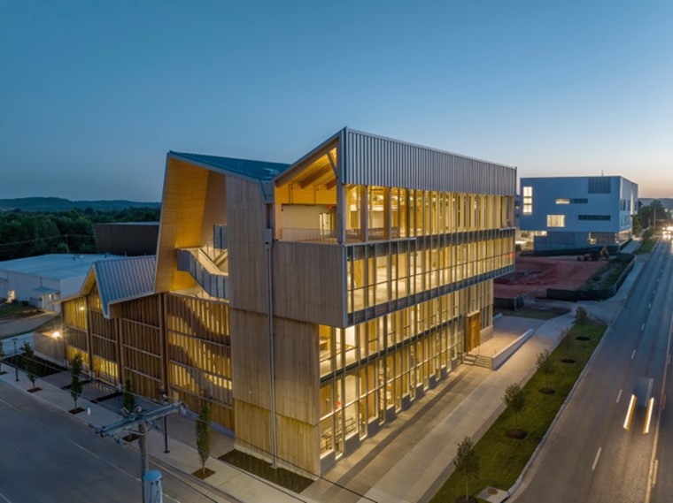 Anthony Timberlands Center for Design and Material Innovation avattiin elokuussa 2025 Fayettevillessä, Arkansasissa, Yhdysvalloissa. Innovaatiokeskus on toteutettu University of Arkansas, Fay Jones School of Architecture + Design -arkkitehtikoulun käyttöön. Rakennus on sekä puurakentamisen opetusta ja tutkimusta palveleva tila että tutkimusväline itsekin.