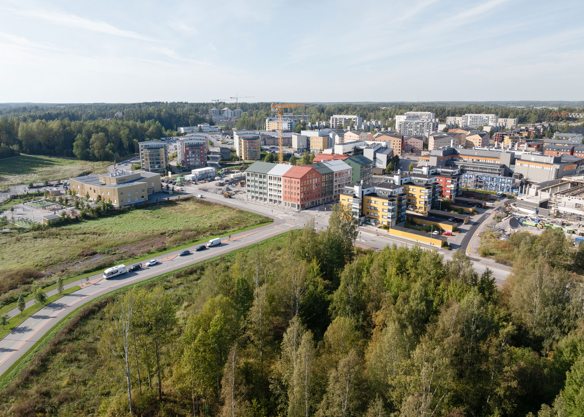 Porvoon Länsirannan puukortteli on kaupunkimainen ja selkeästi rajattu kokonaisuus, jossa perinteisestä puukaupungista inspiroitu värimaailma luo modernin ja yhtenäisen ilmeen. Huolellinen kaavakehitys, sääsuojassa toteutettu rakentaminen ja sisäpihan suora yhteys Tehtaanpuistoon tukevat laadukasta asumista.