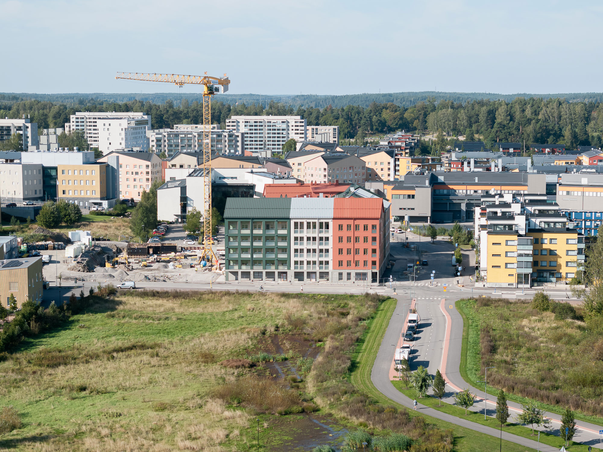 Toteutus tehtiin sääsuojan alla, mikä mahdollisti rakennusaikaisen kosteudenhallinnan tarkasti ja luotettavasti.