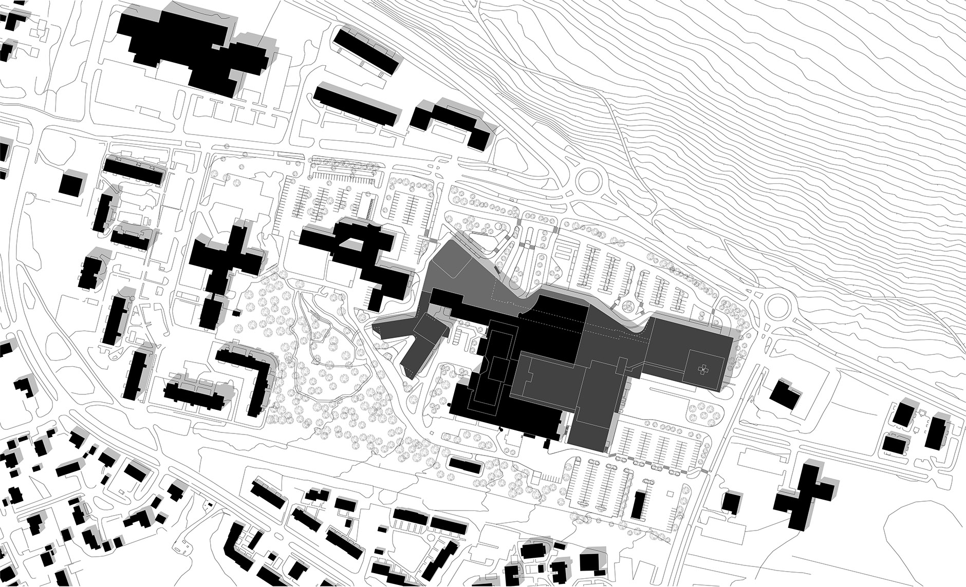 Uusi kuuma sairaala ja pysäköintirakennus sijaitsevat nykyisen sairaalan itäpuolella. Sisäänkäynnin puiset pinnat luovat lämpimän ja kutsuvan tunnelman. Psykiatrinen sairaala sijoittuu keskussairaalan länsipuolelle pienen metsikön viereen. Tämä tuo luonnon osaksi hoitoprosessia. Koko hankkeen keskiössä on potilas, ja tärkeimpiä tavoitteita ovat hyvä asiakaskokemus, turvallisuus, tehokas hoito ja henkilökunnan hyvinvointi.