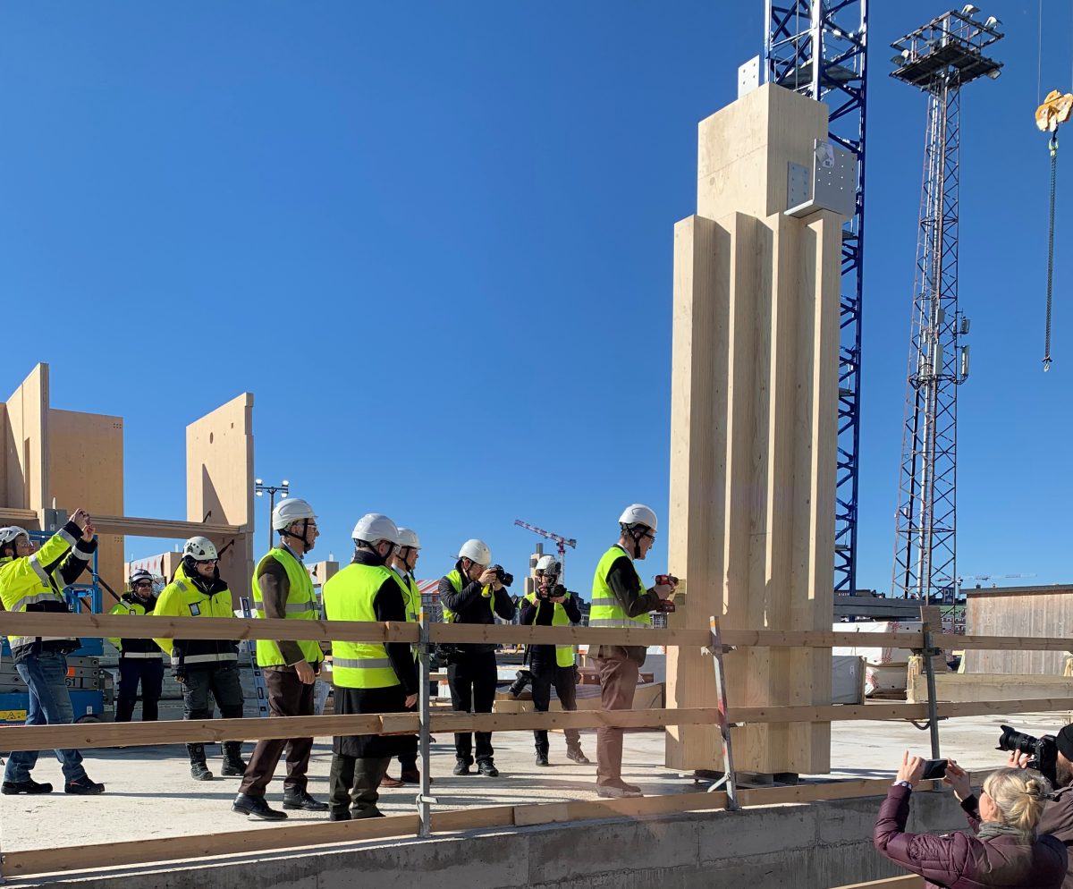 Ensimmäiset Stora Enson massiivipuuelementit asennettu Katajanokan Laiturin tulevaan pääkonttoriin Helsingissä