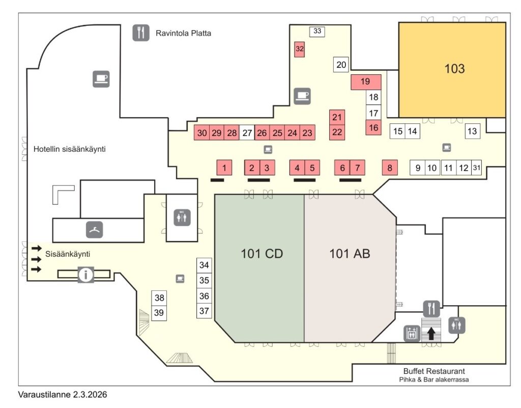Puupäivässä voit tutustua yhteistyökumppaneiden tuotteisiin ja palveluihin. Alta löydät tapahtumakartan, sekä yhteistyökumppanit ja heidän osastonsa sijainnin.