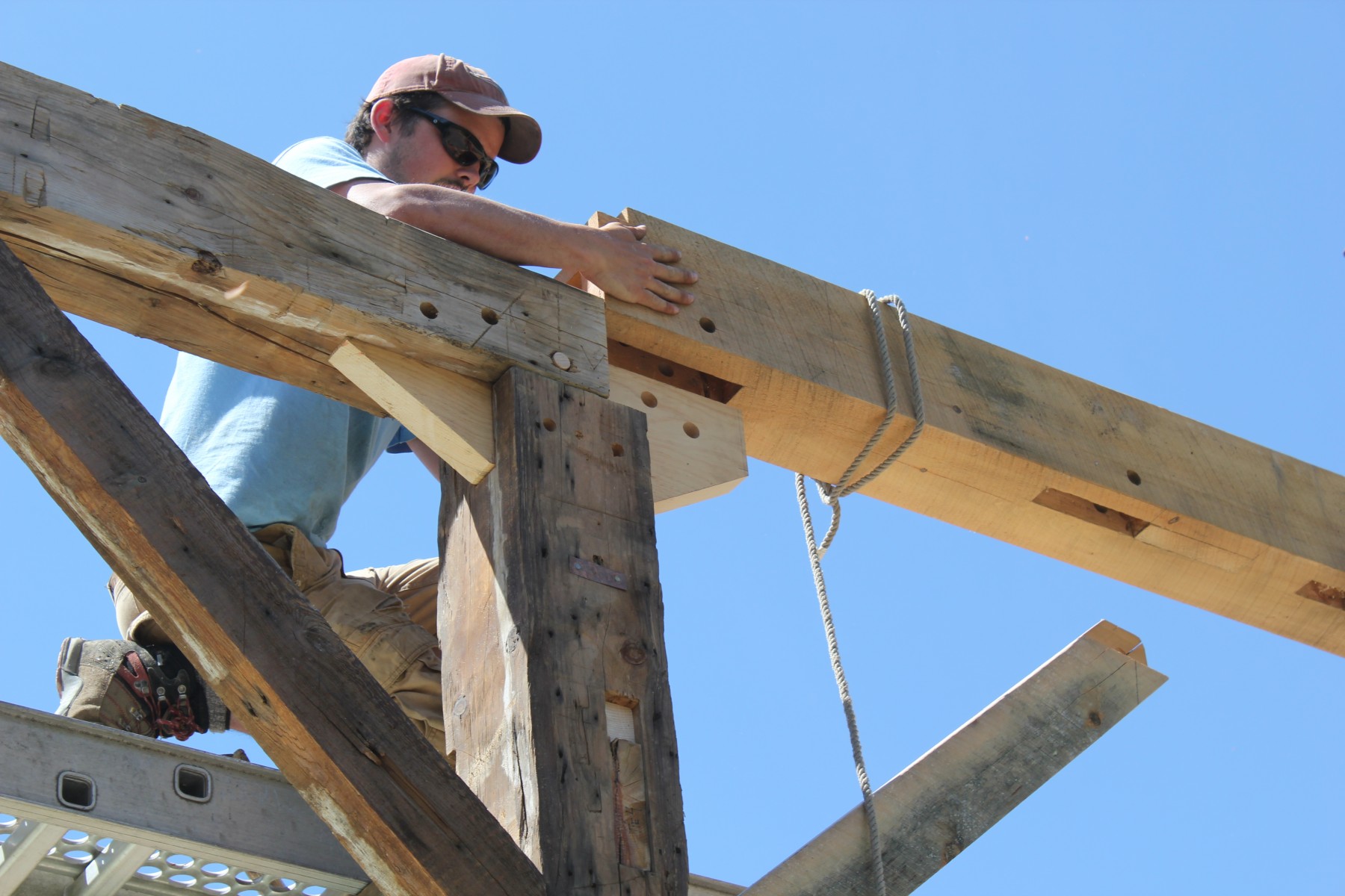 - vasat ovat palkkirakenteena näkyvissä autokatoksen katossa